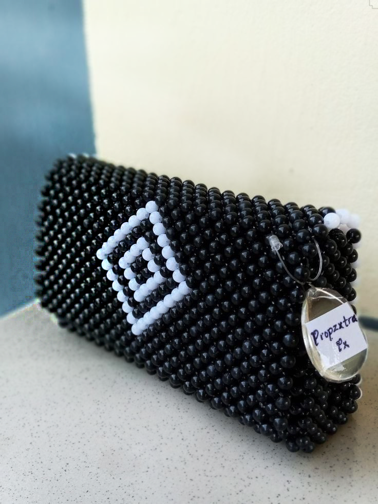 Upgrade your accessory game with this beautifully handcrafted black beaded clutch featuring a classy white diamond pattern in the center. This clutch is a statement piece β entirely made from premium-quality beads, giving it a luxurious look and feel. Whether you’re heading to a wedding π, a festive dinner π, or an evening out with friends π, this clutch is your perfect companion.