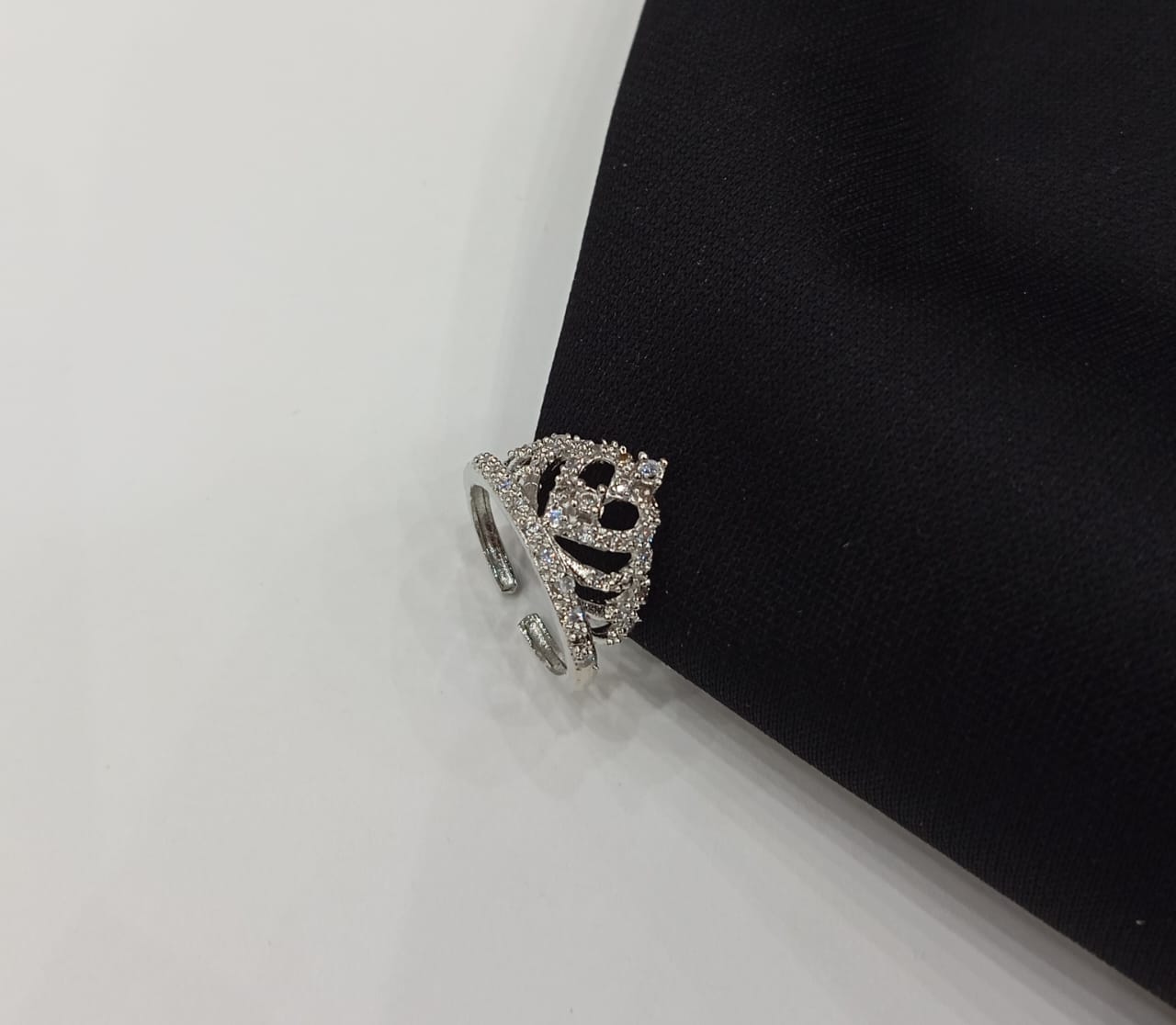 Elegant silver adjustable ring with crown design featuring the initial “B”, encrusted with shimmering cubic zirconia stones. Perfect for gifting or personal wear. ππ«
