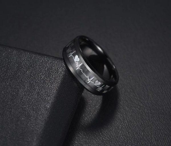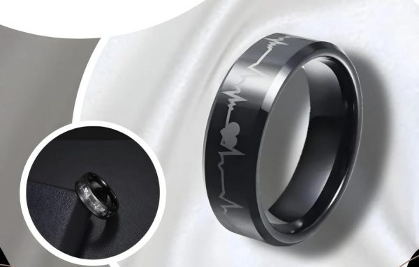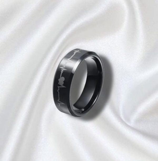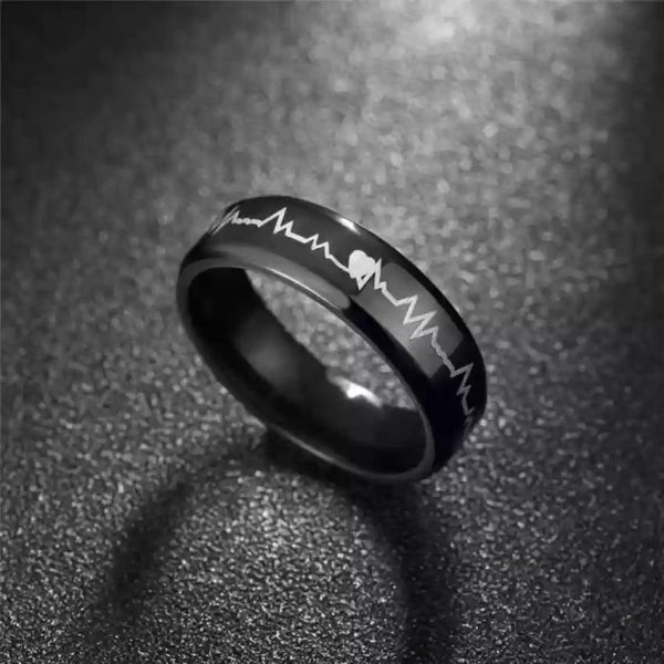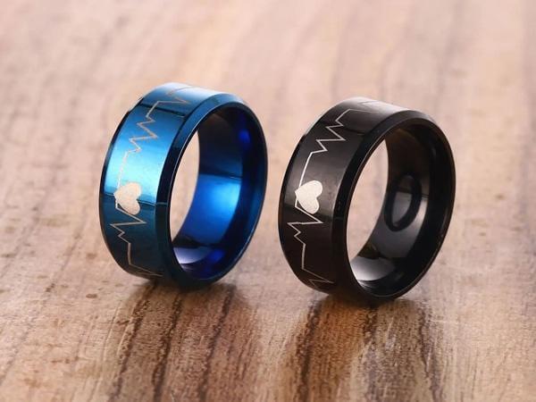Stylish unisex stainless steel heartbeat rings in blue & black. Ideal gift for couples or yourself. ππ€