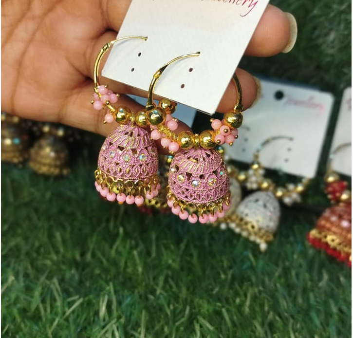 Stunning Pink & Gold Beaded Jhumka Earrings. 🌸 Traditional Pakistani hoops with intricate design and delicate pink beads. Perfect for festive and traditional wear! ✨