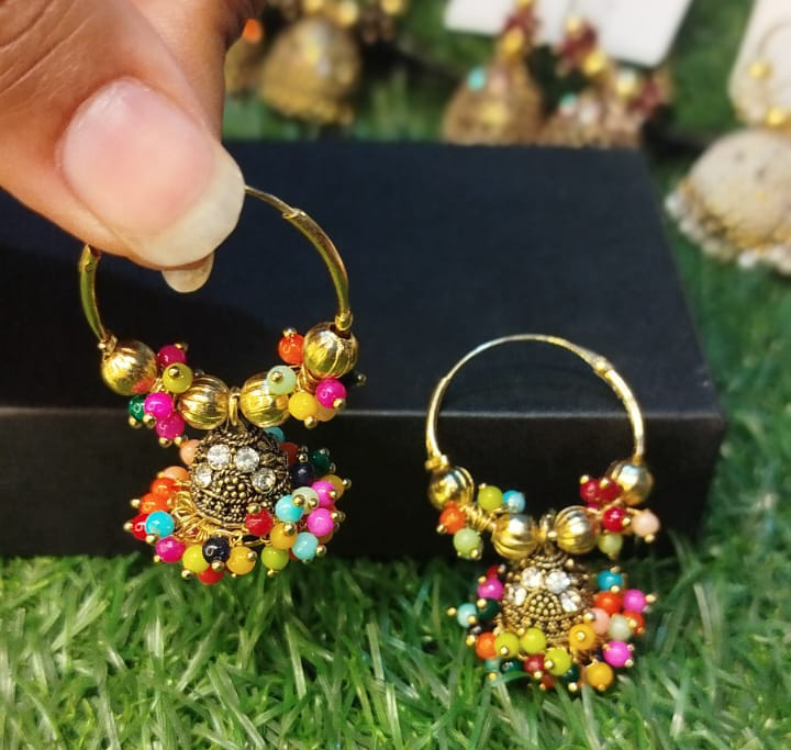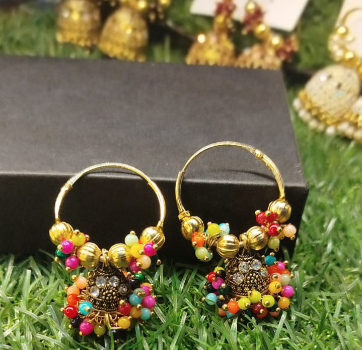 Traditional Multicolor Beaded Hoop Earrings β Ethnic Jhumki Style πβ¨